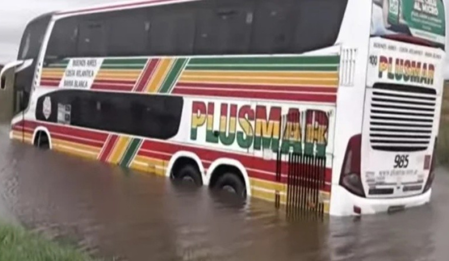 La Tormenta de Santa Rosa sigue dejando postales tan dramáticas como insólitas en distintas provincias. Esta vez, un colectivo de la empresa Plusmar que viajaba de madrugada por la Ruta 5 se despistó por una fuerte ráfaga de viento, avanzó unos 100 metros fuera de control y terminó empantanado en una zanja totalmente anegada.