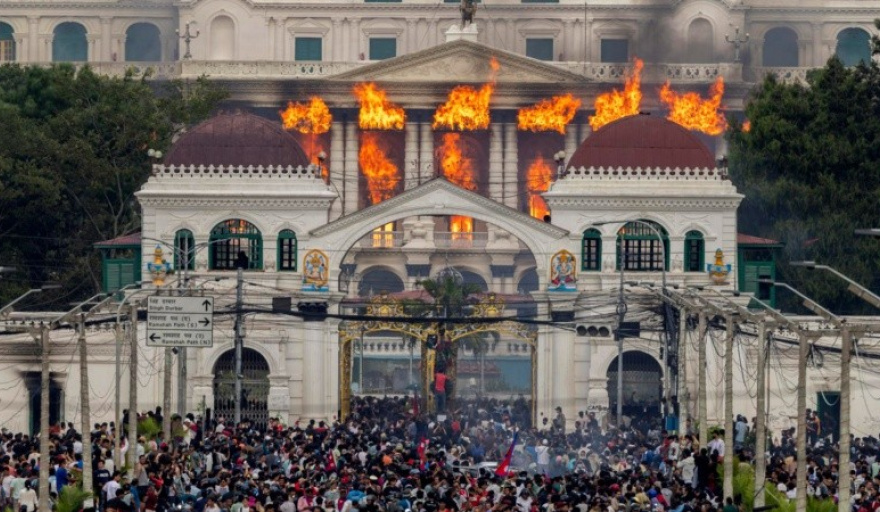 Multitudes ingresaron al complejo de Singha Durbar, prendieron fuego al Parlamento, la Oficina de la Presidencia y el Tribunal Supremo.