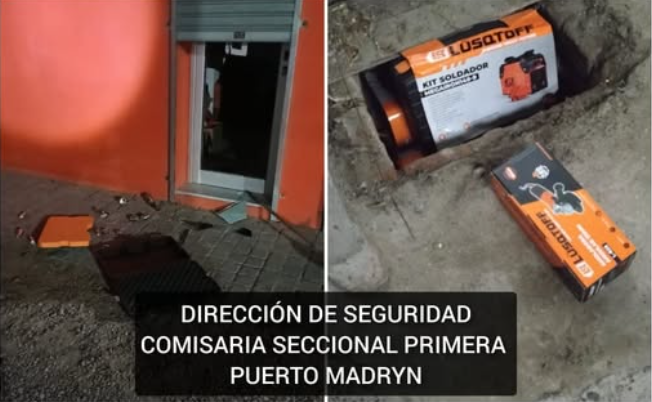 Madrugada movida en Puerto Madryn: un hombre fue detenido luego de ser sorprendido con cajas de herramientas robadas de un local comercial en la calle Gral. Mosconi.