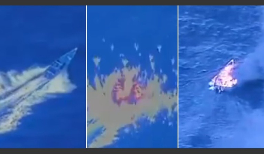 El video difundido por el Pentágono muestra la persecución de la lancha, seguida de una explosión que la envuelve en humo y fuego, hasta quedar consumida por las llamas.