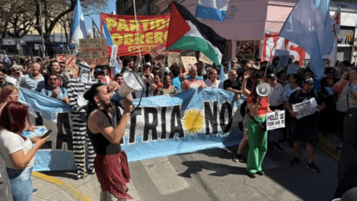 Desde temprano, hubo cruces entre militantes de La Libertad Avanza y manifestantes de izquierda. Los disturbios incluyeron insultos, forcejeos y hasta la rotura de un gazebo preparado para recibir al presidente.