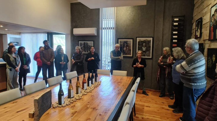 El predio de Nant y Fall, pionero en la producción vitivinícola local, también ofrece recorridos guiados, gastronomía de chacra y un espacio para motorhomes, combinando arte, vino y turismo en una experiencia sensorial completa.