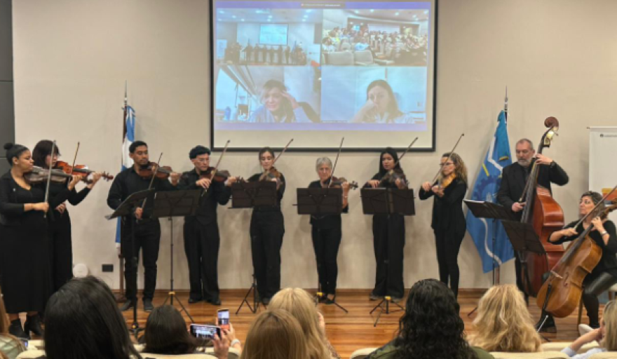 La Camerata de Cuerdas de la Municipalidad de Puerto Madryn llevó su talento hasta la Legislatura del Chubut, donde brindó un recital en vivo en el marco de las Primeras Jornadas Provinciales de Calidad y Seguridad de las Personas, organizadas por la Secretaría de Salud provincial.