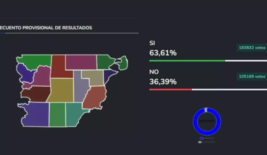 La reforma constitucional fue avalada por más del 60% del electorado y entrará en vigencia sin necesidad de una nueva votación legislativa. Con el 97% de las mesas escrutadas, el “Sí” obtuvo 183.832 sufragios, mientras que el “No” alcanzó el 36,39% (105.169 votos).