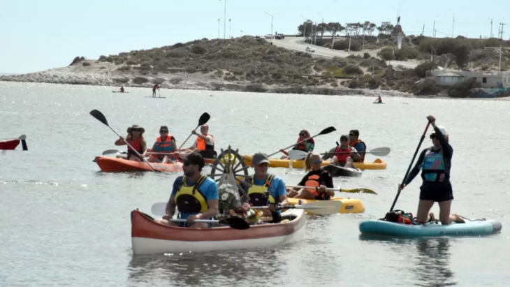 El clima acompañó y permitió que la ceremonia se viviera a pleno tanto sobre el mar, con 17 kayaks avanzando en procesión, como desde la orilla, donde más de 30 personas siguieron cada tramo con emoción.