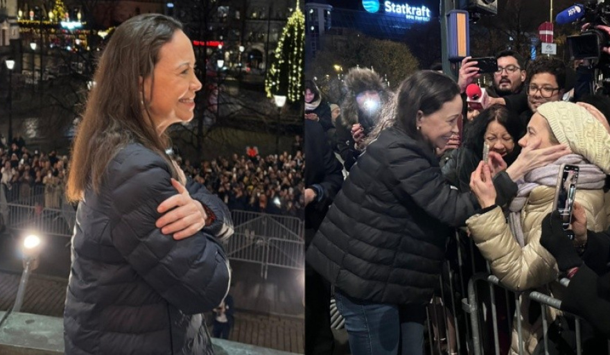 Durante su estadía en Oslo, la líder opositora tuvo su primera aparición pública desde enero: salió al balcón del Grand Hotel, cantó el himno y saludó a la comunidad venezolana que se agrupó para verla. Más tarde se emocionó al hablar del reencuentro con sus hijos, tras meses de clandestinidad.