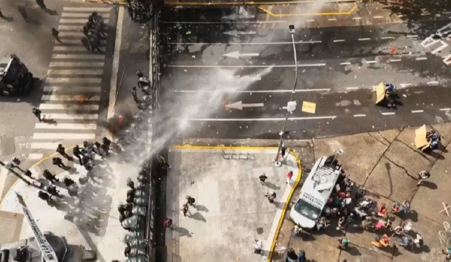 Aunque la mayoría de las columnas se replegó hacia la calle Hipólito Yrigoyen, grupos aislados continuaron arrojando piedras durante varios minutos.